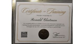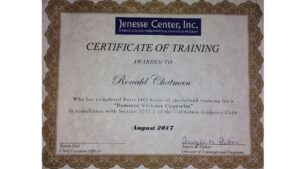 Ronald was also trained and certified and awarded by the Jenesse Center as a domestic violence counselor in 2017.